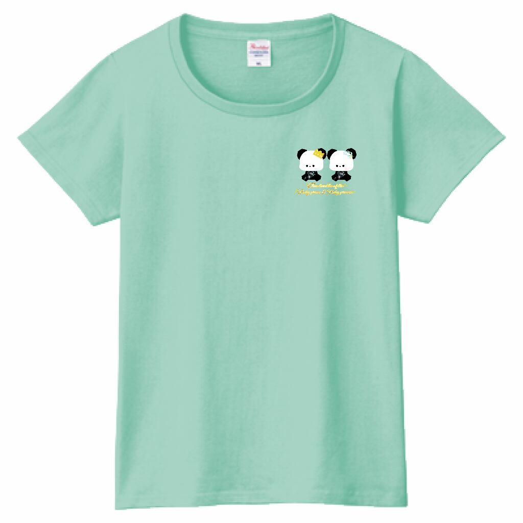 Truetwinkles of the Babyprince & Babyprincess♥mini.Panda☁ヘビーウェイトTシャツ☁Ladies〔Printstar☁✵੯•`໒♥Ice green