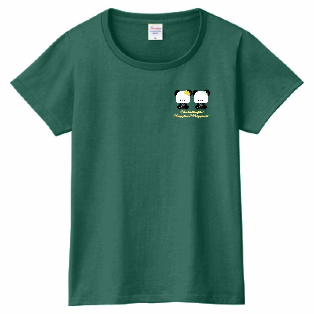 Truetwinkles of the Babyprince & Babyprincess♥mini.Panda☁ヘビーウェイトTシャツ☁Ladies〔Printstar☁✵੯•`໒♥Ivy green